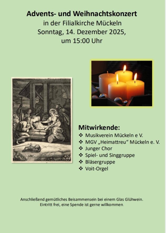 wir wollen das Medium Internet gezielt dazu nutzen, um Ihnen möglichst viele Informationen in gebündelter Form über unseren Musikverein Mückeln zu geben. Unsere Web-Seiten sollen Ihnen als Orientierung und als Wegweiser dienen. Selbstverständlich kann aber eine Homepage nicht alles Wissenswerte vollständig und lückenlos enthalten und leider auch nicht allen Wünschen und Ansprüchen in vollem Umfange gerecht werden. Durch regelmäßige Fortschreibungen und Ergänzungen möchten wir unsere Seiten aber immer möglichst aktuell halten.